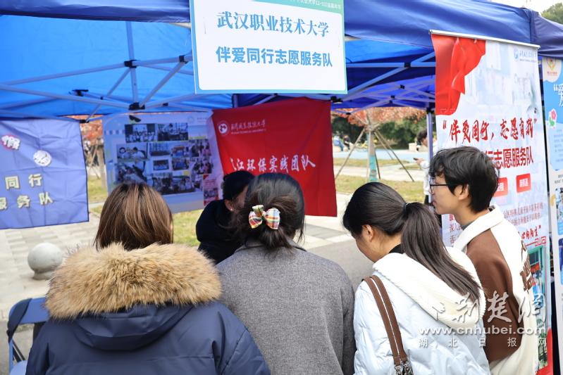 荆楚网(湖北日报网)讯(记者何鹏 通讯员娄修明、梅捷)12月4日,在第40个国际志愿者日来临之际,武汉职业技术大学伴爱同行志愿服务队、群英荟萃志愿服务队、酒店降碳小分队三支队伍赴华中农业大学,参加高校青年志愿服务主题交流分享暨“国际志愿者日”省级示范活动,通过展示本校实践成果与吸收先进经验相结合的方式,共同促进学校志愿服务工作提质增效。校团委同步组织师生代表全程观摩学习。
