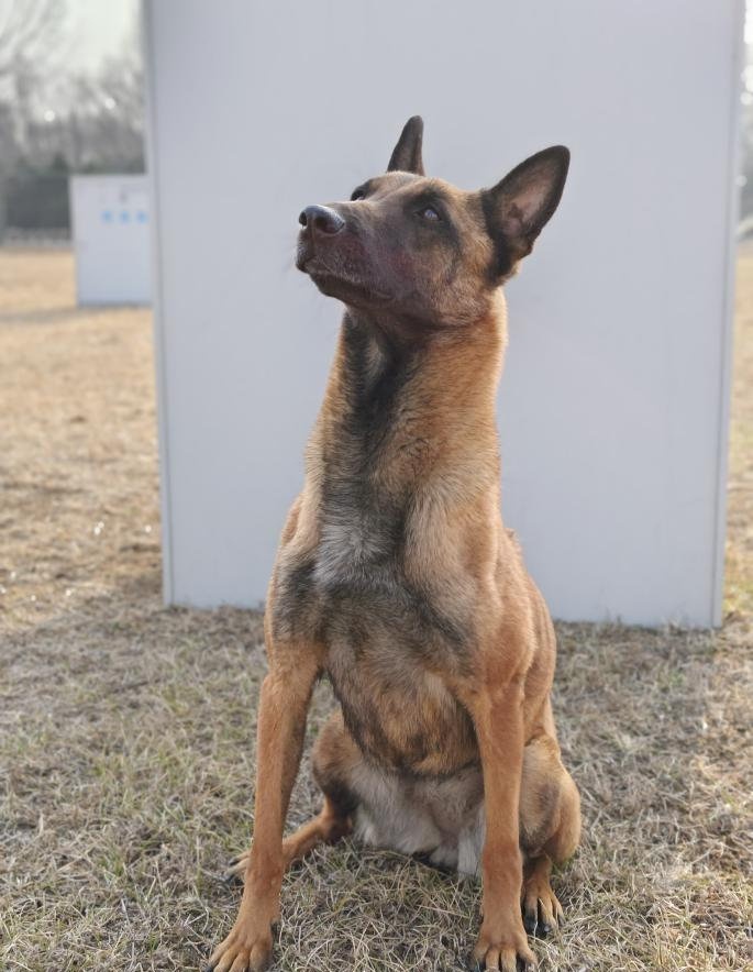 二号犬兰博,雌性灰黑色比利时牧羊犬,2018年10月出生,是一只搜救犬,身体状况良好,性格活泼,反应迅捷,耐力较强,擅长穿越障碍、箱体搜救。