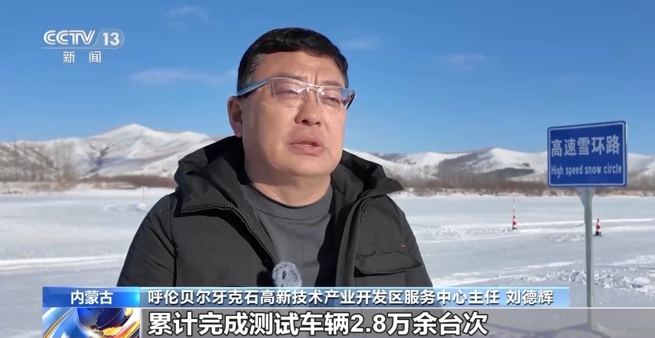 呼伦贝尔牙克石高新技术产业开发区服务中心副主任 韩铁峰:今年我们全新开发了55万平方米专属测试湖面,重点围绕新能源汽车与智能网联汽车,开展极寒环境下的系统性认证。目前,牙克石冬季汽车测试产业在全国市场占有率已超过40%,营业收入以每年20%的增长率在不断递增。