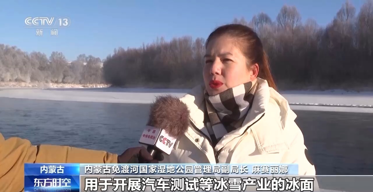 内蒙古免渡河国家湿地公园管理局副局长 麻赛丽娜:用于开展汽车测试等冰雪产业的冰面,全部位于湿地公园的合理利用区内,面积仅占湿地公园面积的5.28%。汽车测试活动集中在冬季进行,这时候候鸟已经南迁,不影响鸟类栖息生存环境。测试企业厂房、车间均不在湿地公园范围内,生产生活产生的垃圾、废气、废水处理执行最严格的环保要求。