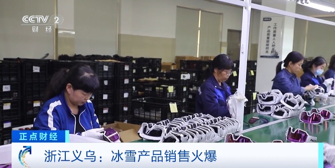 商贸城的火爆订单,背后是浙江制造企业的产能支撑。在浙江一家滑雪装备制造企业的车间,各条生产线正开足马力运转。据了解,这家企业开设滑雪镜生产线已经有7年,近几年销量增长明显。