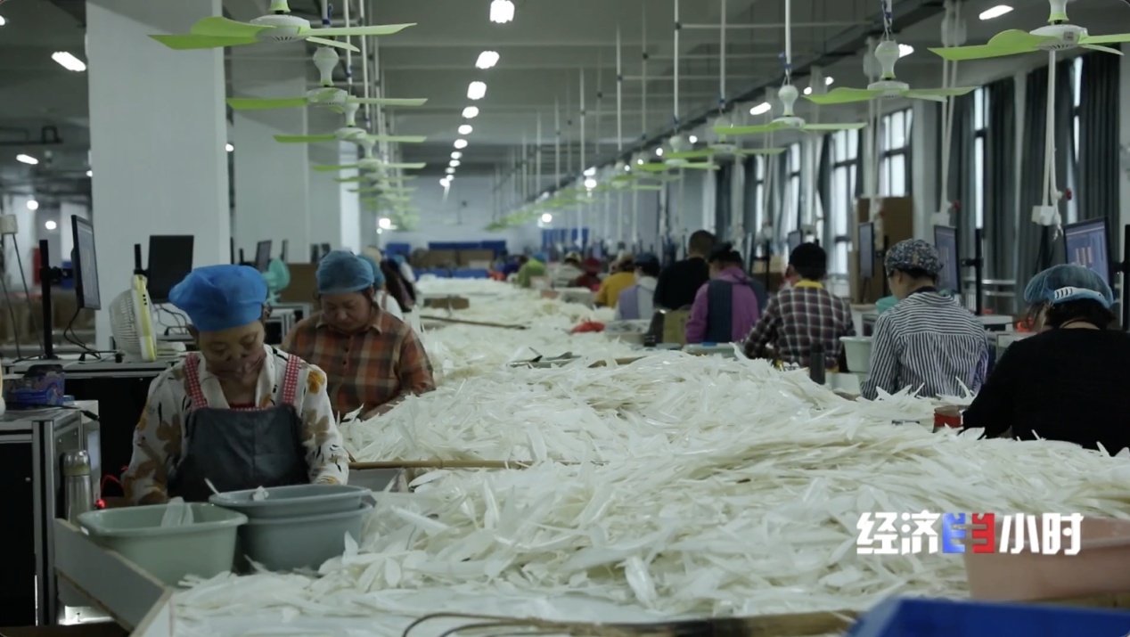 过去,羽毛球一般是选用鹅或鸭翅膀上不同部位的羽毛,做出不同等级的羽毛球。今年,当地的一家公司开发出了一种新工艺,用以往做低等羽毛球的弯毛做出了优等羽毛球。弯毛拉直工艺降低原料成本30%左右,既盘活了低效资源,又提高了供应链的安全性。