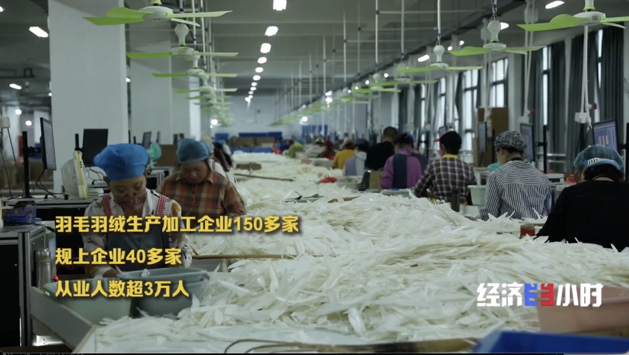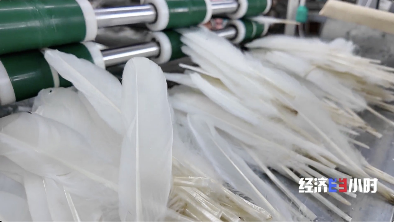 当地通过扩大鸭鹅养殖来补链、强链,在羽毛供给量增多的同时,鸭鹅产生的羽绒数量也水涨船高。当地不少从事羽绒加工的企业,已经用上了数字化生产线。