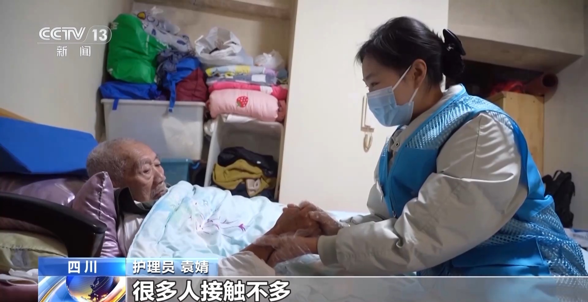 照护机构工作人员 蒋兵:因为像这样的老人,他其实不太方便下楼,跟他交流的人也不多,所以我们的工作人员在服务期间通过心理的沟通,帮助他们更多地去了解外面的世界。
