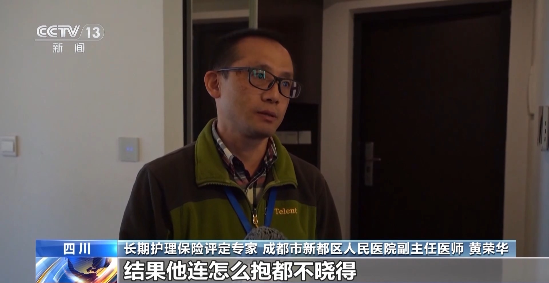 长期护理保险评定专家、成都市新都区人民医院副主任医师 黄荣华:他表现出的失能一定要有疾病的支持,你说你偏瘫,你说你双下肢无力,要有疾病的基础。另外还有一些细节,比如说床边的尿不湿、便盆、轮椅,最后就是家属长期照顾,家属的熟练程度。之前也有一个病人,我们也是通过这方法鉴别出来的,他说他的母亲下不了床,我们就叫他把他的母亲挪到椅子上,结果他连怎么抱都不晓得。