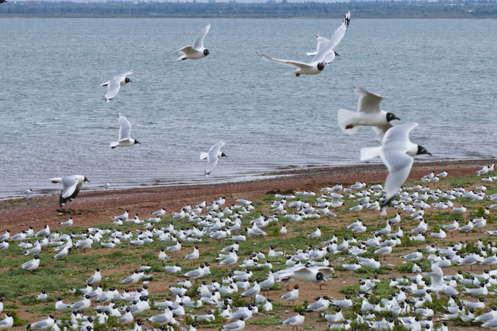 红碱淖国家级自然保护区湖心岛上的遗鸥(2024年6月4日摄,无人机照片)。 新华社记者 邵瑞 摄