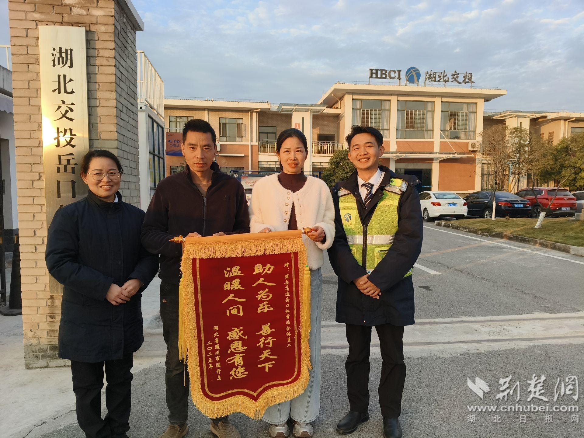 荆楚网(湖北日报网)讯(通讯员郑点 胡俊敏)“真的太感谢你们了,关键时候帮了我大忙,让我感受到了家人般的温暖!”12月5日,司机王女士(化姓)专程驱车来到湖北交投随岳运营公司岳口收费站,将一面印有“助人为乐 善行天下,温暖人间 感恩有您”的锦旗郑重送到工作人员手中,锦旗上的鎏金大字熠熠生辉,每一笔都饱含着她对收费站工作人员的诚挚谢意。