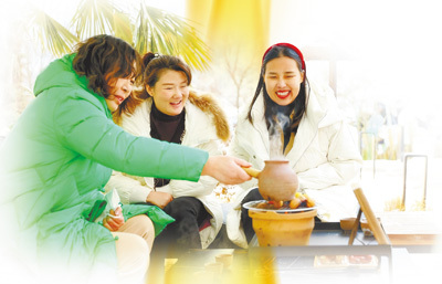 河南栾川县,游客在畔山民宿围炉煮茶。本报记者 朱佩娴摄