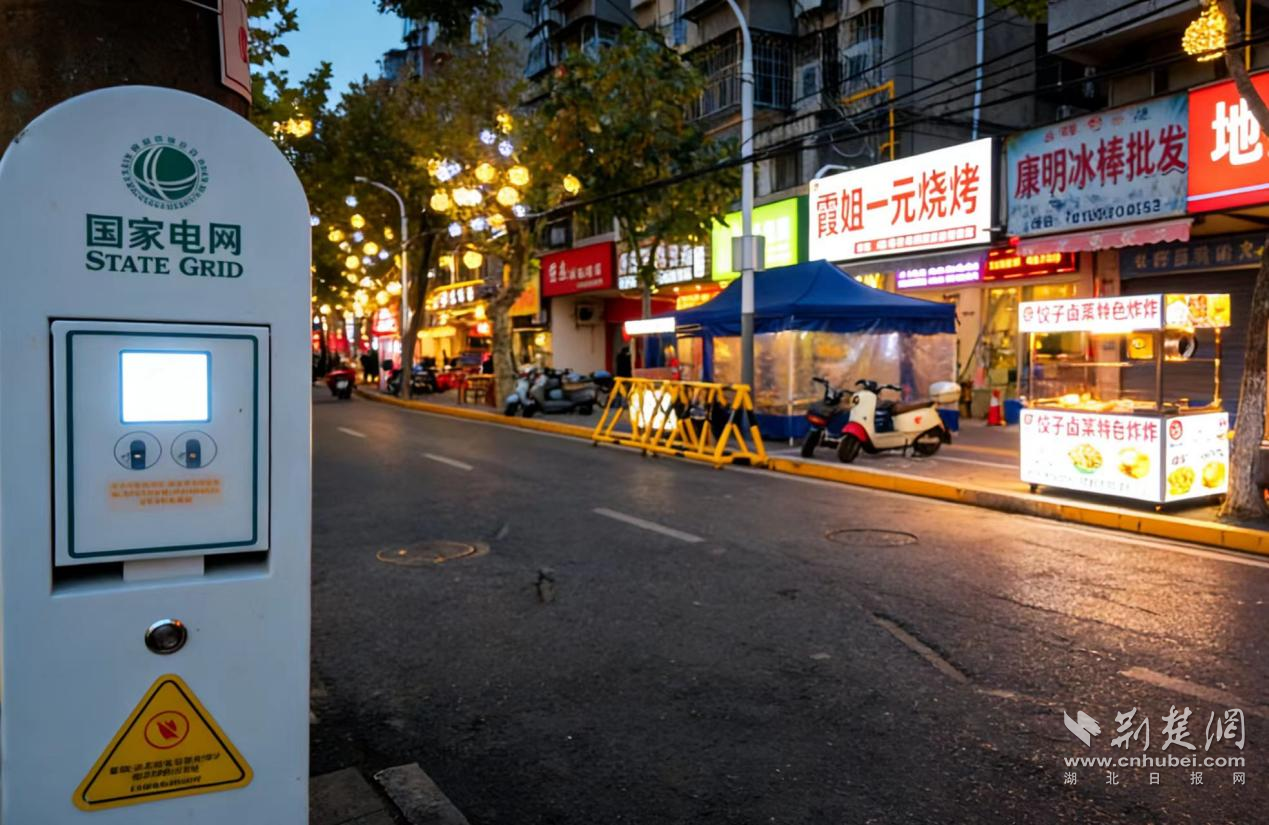 荆楚网(湖北日报网)讯(通讯员 吴玉明 周志勇)12月10日,1台崭新的扫码用电桩亮相荆州市沙市区五一路夜市摊点。“以前摆摊拉线接线,既麻烦又不安全。现在只要扫一下二维码,马上就能用电,电费自动结算。”五一路经营烧烤摊的摊主刘师傅欣慰地说。