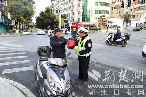 未按规定佩戴安全头盔。通讯员 供图