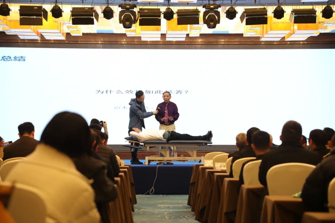 北京中医药大学于天源教授以《清宫正骨夏氏提法之颈部端提法的应用与演示》为主题,梳理清宫正骨夏氏推拿体系的理论脉络,阐释其在颈椎病治疗中的独到理念,并重点阐述颈部端提法在调整颈椎曲度、放松肌群等方面的关键操作要点。