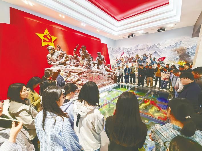 青年党员干部在岳西大别山烈士陵园陈列馆接受革命教育。(湖北日报全媒记者 陈迹 摄)