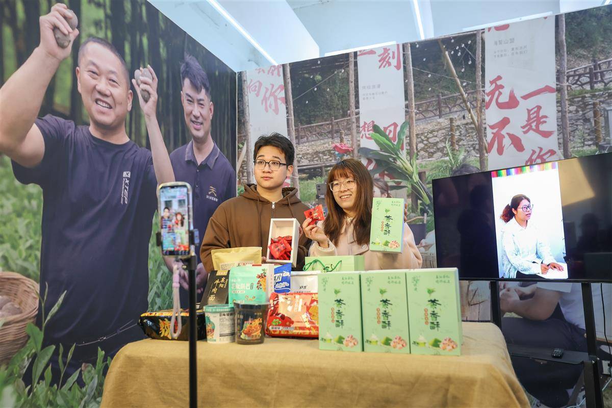 湖北日报讯(记者褚楠、通讯员王凯、戴孟廷)“这是微短剧中亮相的茶香酥,欢迎下单支持!”12月10日,湖北文理学院理工学院2026届毕业设计创新成果展在襄阳市六〇三文创园举行,该校《堰河那些事儿》剧组现场开设直播间,为谷城县堰河村农产品带货,引得市民纷纷驻足咨询选购。