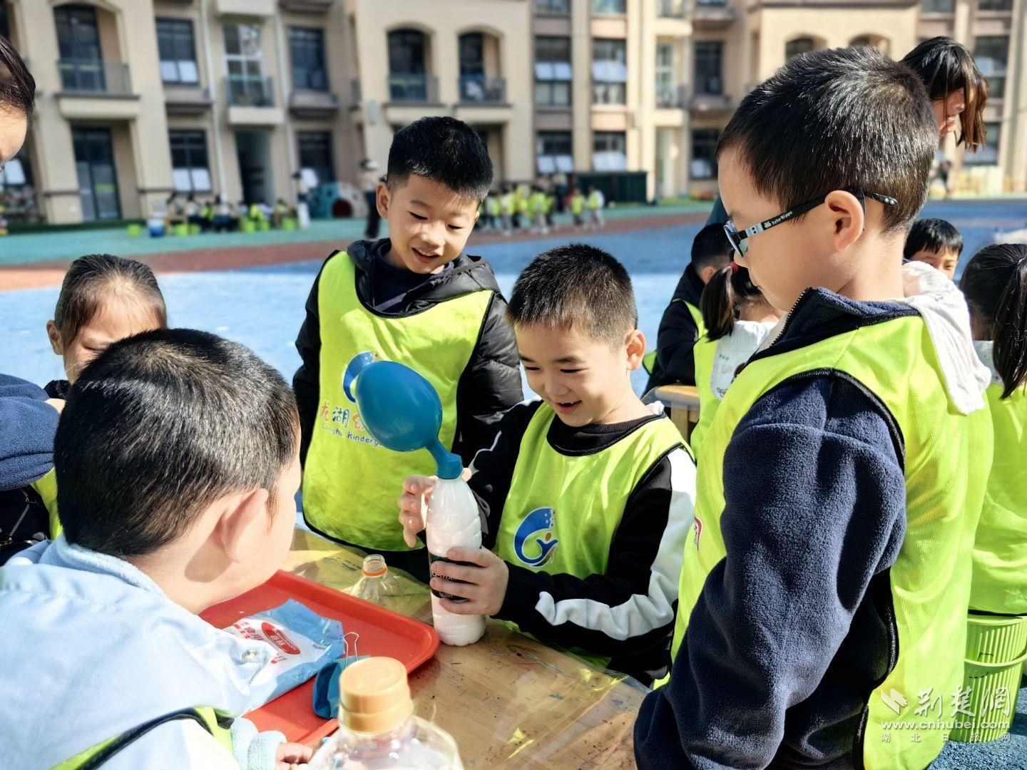 科技节活动现场化身为一个开放的探索空间。教师们引导孩子们利用随手可得的日常材料,操作静电实验、发射“火箭袋”。见证日常物品的奇妙变化,直接点燃了孩子们的好奇心。园区内,“气球火箭”、“叶子飞机”、“树叶吹泡泡”等游戏点吸引了孩子们踊跃尝试。他们在奔跑中测试风力,在触摸间感知材料,在合作里完成任务,于玩乐中理解了空气动力、流体力学等科学现象的雏形。