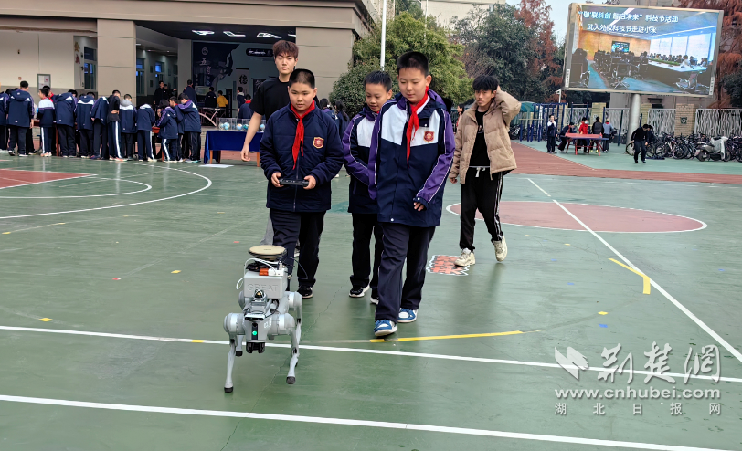 武汉大学测绘学院大四学生杨武卓作为志愿者,负责机器狗与无人车演示,正被中学生层层围住。“他们更喜欢上手操作,看它自主运动。”他给学弟学妹的寄语朴实而深刻:“把基础打牢,才能在未来得心应手,激发创新。”