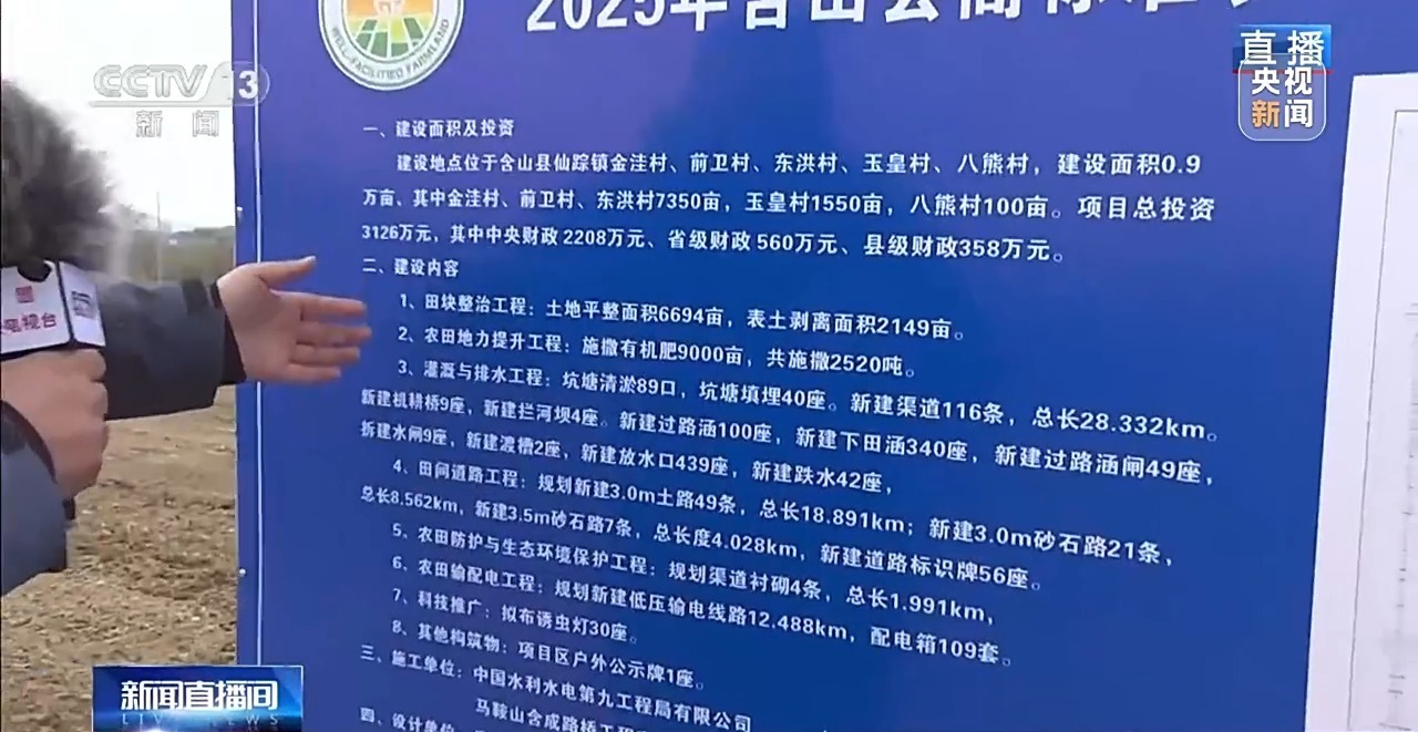 冬季是高标准农田施工的黄金窗口期。在毗邻长江的安徽省马鞍山市含山县,施工条件适宜,工程建设正在紧锣密鼓地集中推进。高标准农田建设要集中解决哪些问题?“更新”后的农田又能带来什么成效?此刻,总台记者王宁正身处马鞍山含山县的高标准农田建设现场,一起去看看。