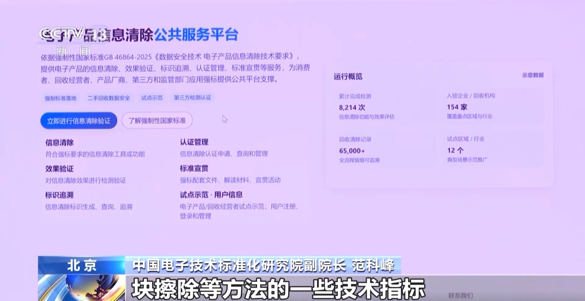 中国电子技术标准化研究院副院长 范科峰:明确了数据覆写、块擦除等方法的技术指标,并通过清除认证、标识追溯、日志记录、技术检测等多种方法验证清除效果。