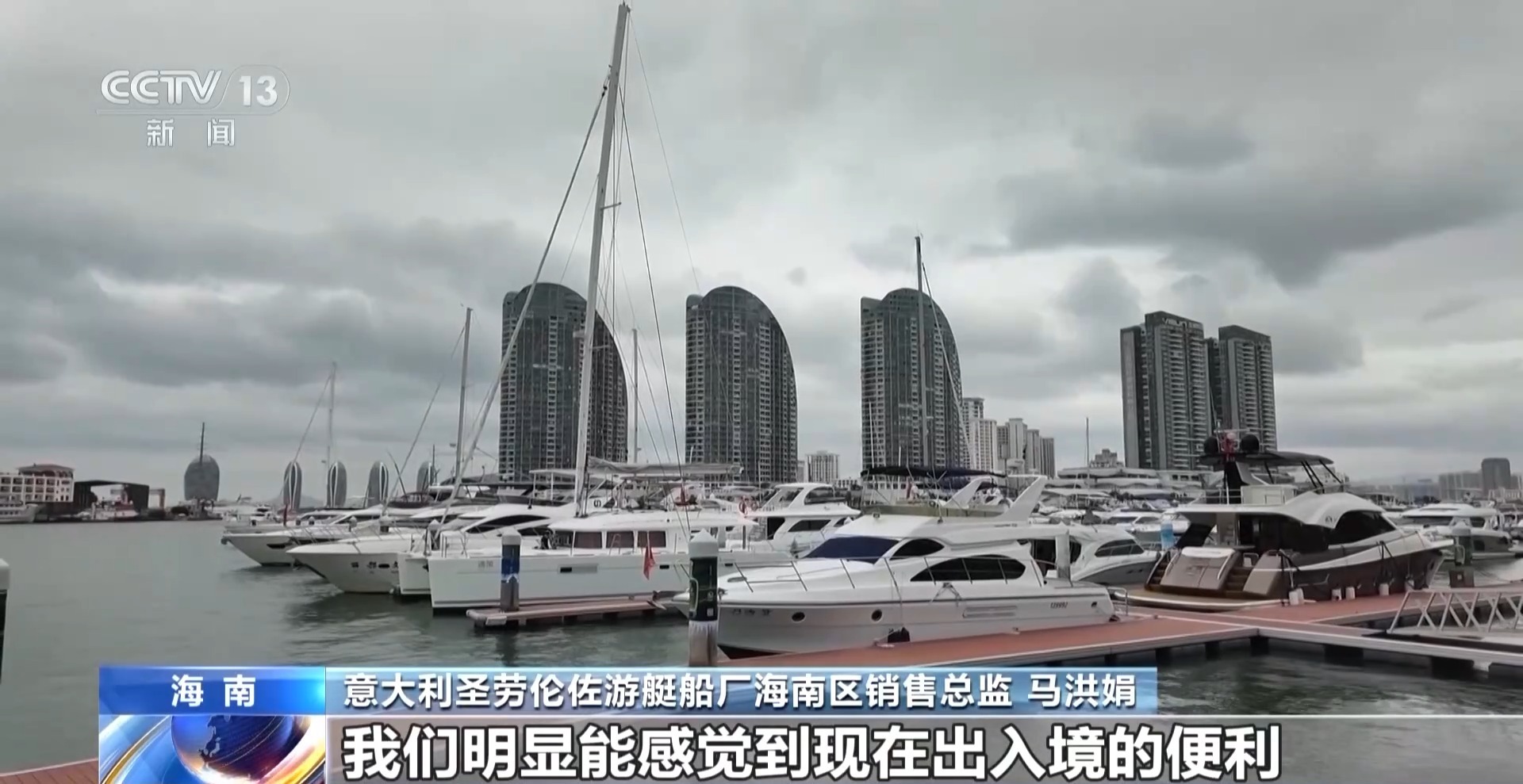 意大利圣劳伦佐游艇船厂海南区销售总监 马洪娟:这艘船是以“琼港澳自由行”到香港那边旅行,我们明显能感觉到现在出入境的便利,给我们的游艇贸易增加了更多的机会,交易量也明显比过去要增加很多。