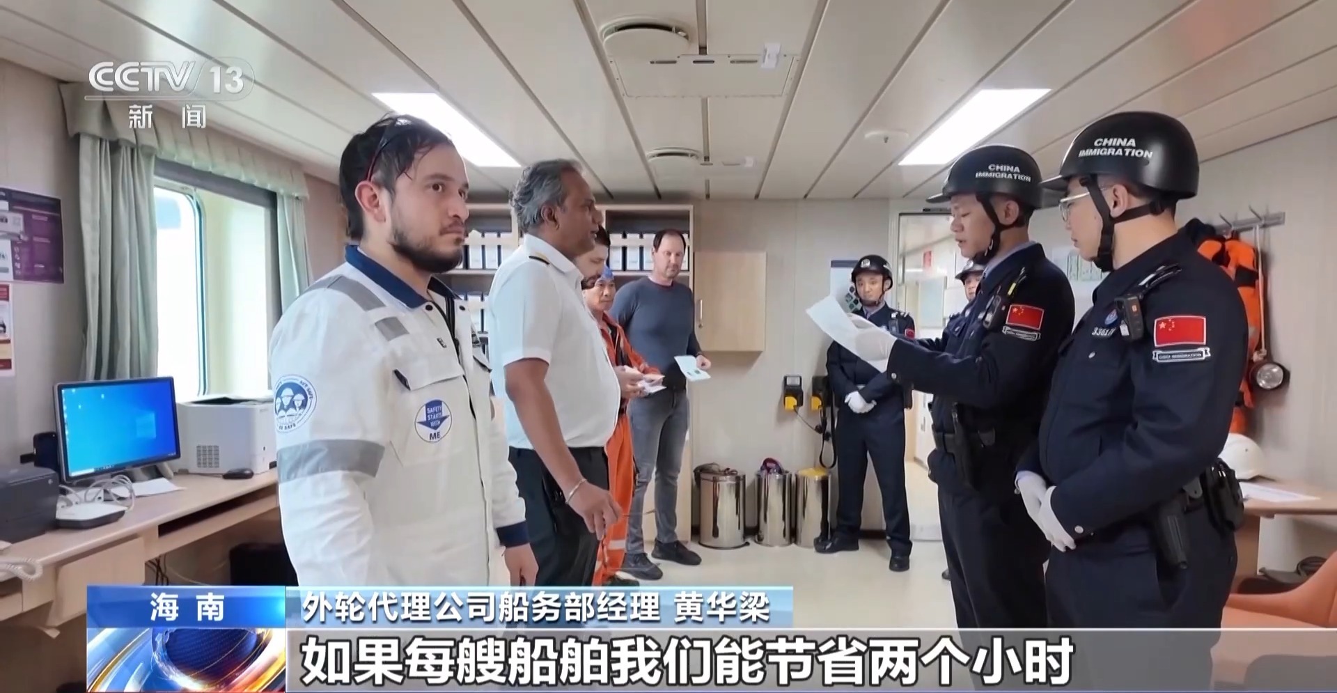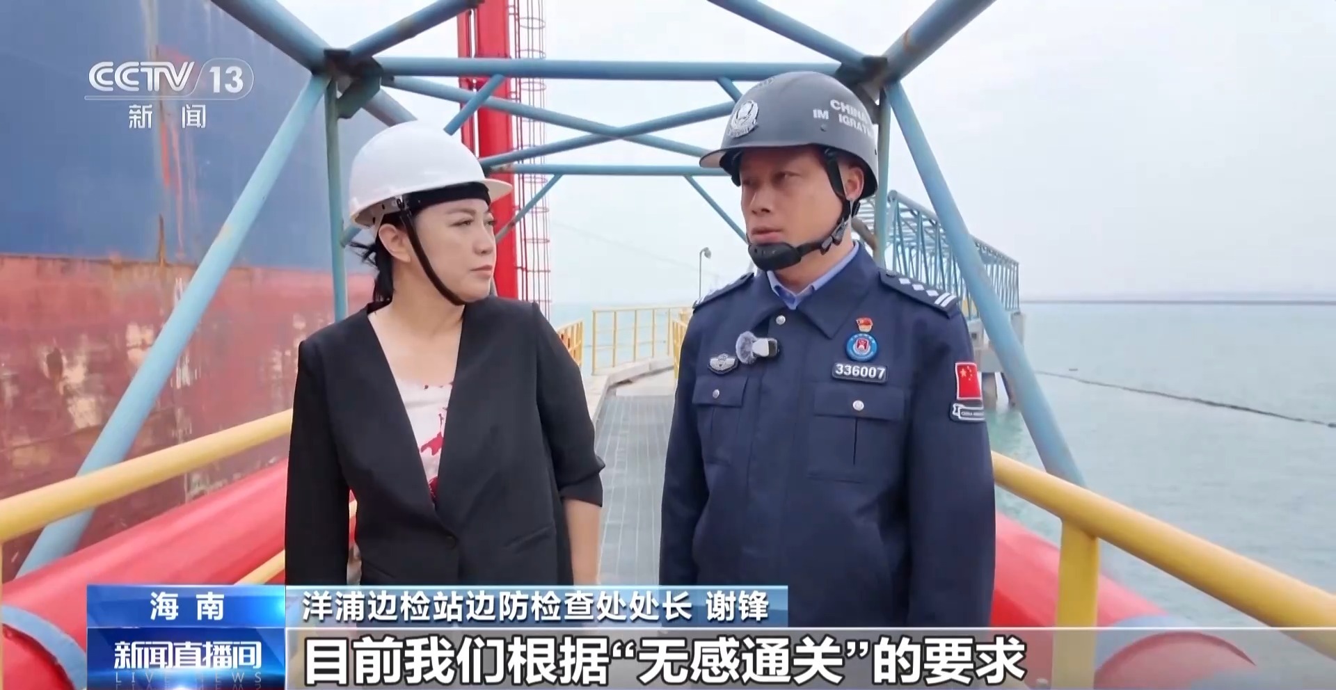 洋浦边检站边防检查处处长 谢锋:目前我们根据“无感通关”的要求,推出了保税燃油快速通关法,以及洋浦港籍国际航行船舶一系列便利措施。我们将执勤点前移了9公里,在三个码头设立了三个执勤点,民警24小时驻守,为船员办理上下船手续,提高了效率。