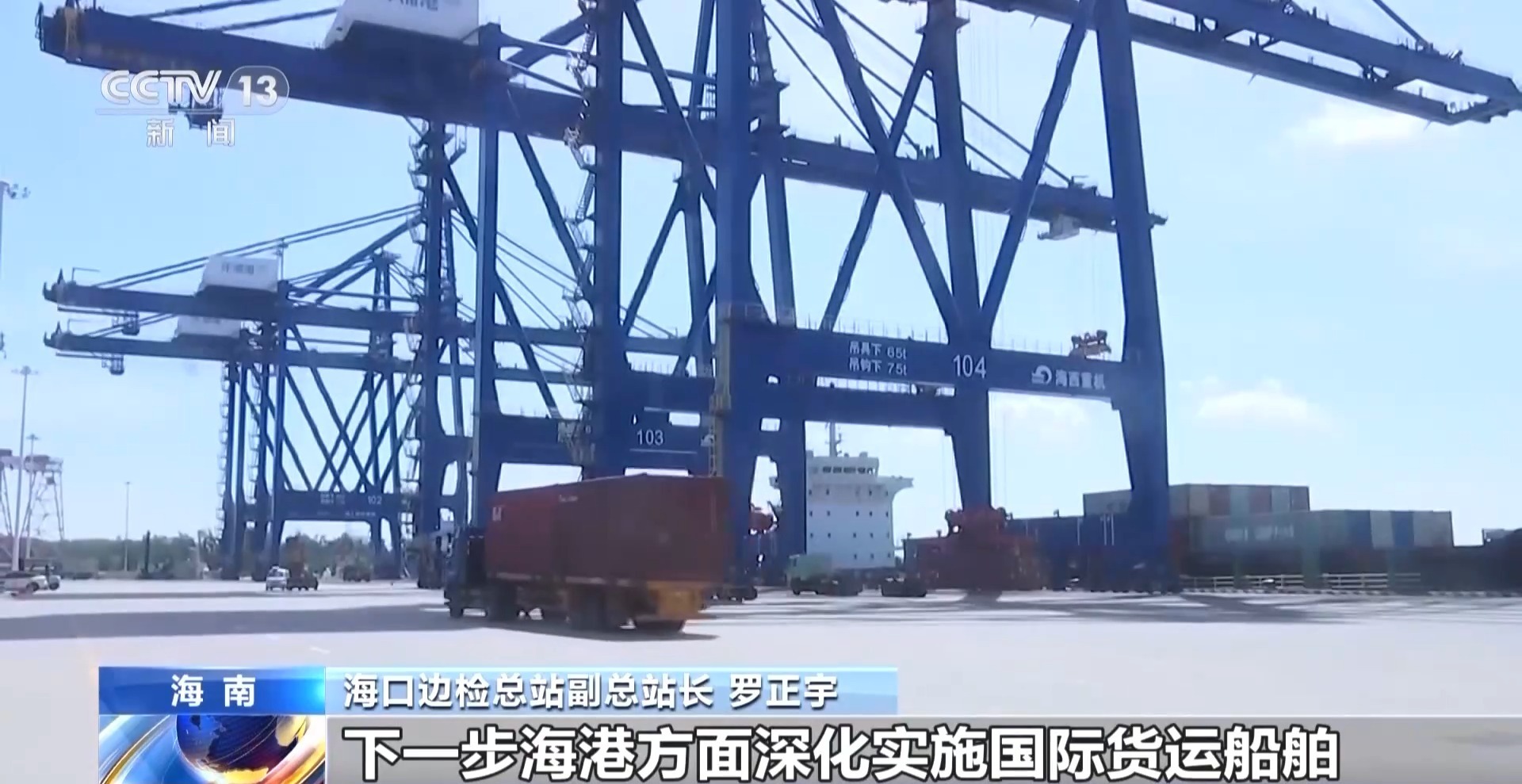 海口边检总站副总站长 罗正宇:下一步海港方面,深化实施国际货运船舶“零等待”作业“零延时”验放,积极建立边检诚信管理机制,以“中国洋浦港”船籍港制度为核心,联动多部门共同优化国际船舶监管服务体系。