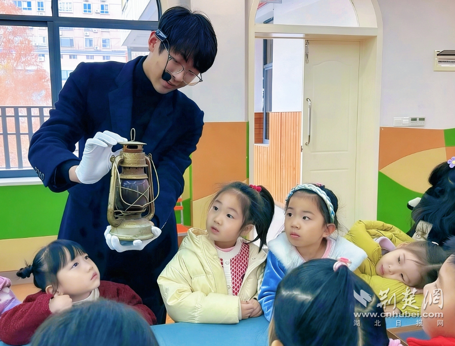 “小朋友们,快看看!这个带玻璃罩的‘宝贝’是做什么的?”黎黄陂路园区活动室内,武汉中共中央机关旧址纪念馆志愿者举着革命时期的照明工具,瞬间吸引了孩子的目光。志愿者还带来红军草鞋等老物件,用童趣语言缓缓讲述老物件背后的革命故事,孩子们凑在展台前观察分享。