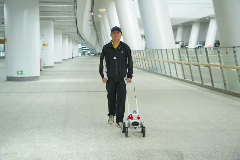 13日,深圳地铁试点启用智能导盲犬“小蒜”,为视障人士提供科技出行解决方案。