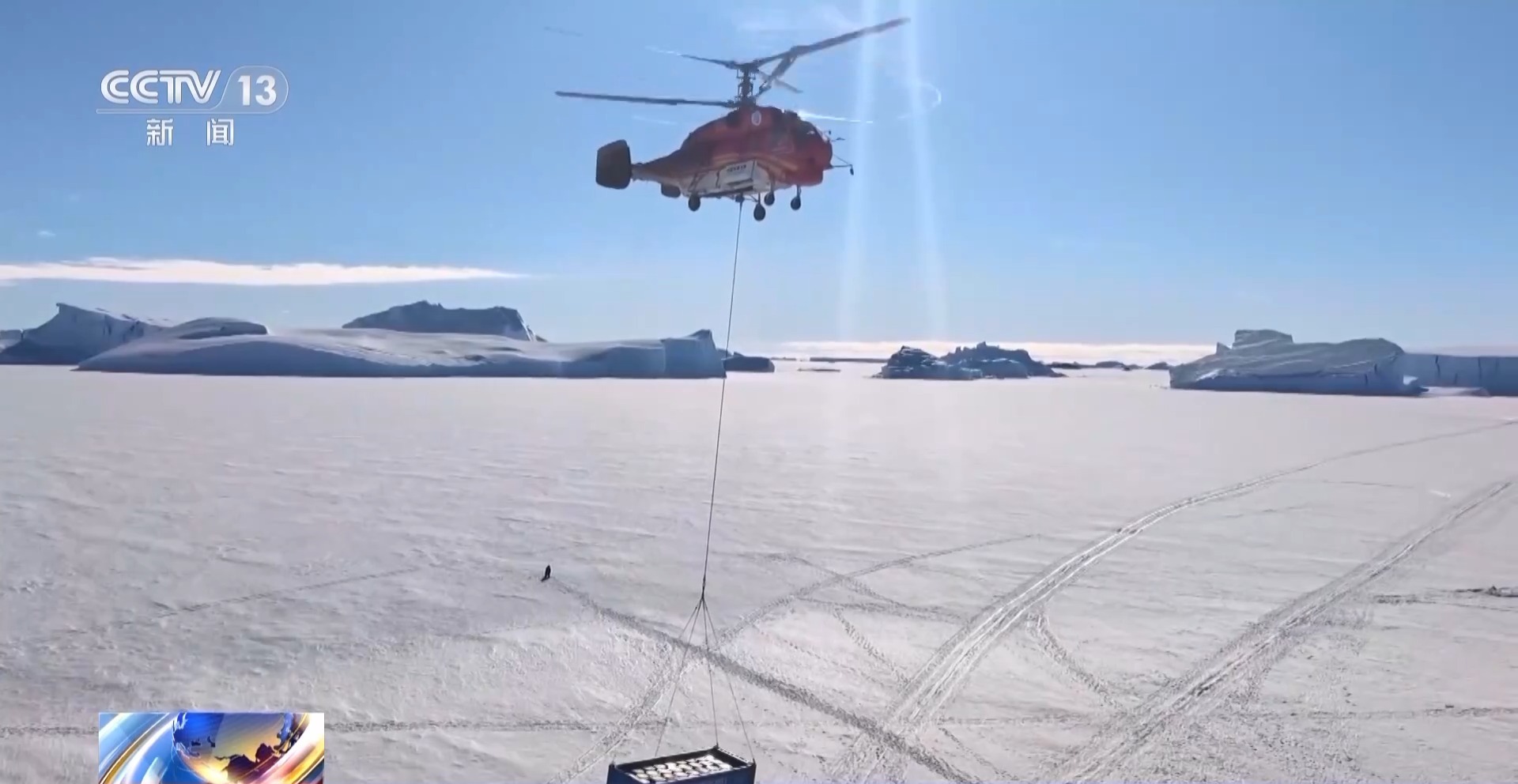 中国第42次南极考察队中山站卸货作业负责人 王焘:这次海冰运输作业的时间非常有限,所以特别安排将直升机无法吊运的科考和后勤保障的重型设备,通过海冰运输的方式实现登陆。此次海冰运输作业一共卸运70撬,总重量约700吨。