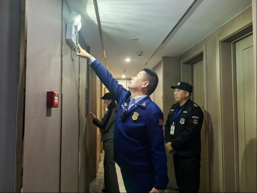 检查中,大队监督员坚持问题导向,重点围绕消防责任落实、设施完好率、疏散通道畅通、用火用电用气规范等方面展开。“安全出口指示标志需保持常亮”“常闭式防火门必须保持关闭状态”,在酒店消防控制室,监督员详细查看了值班记录、设备运行和人员持证上岗情况,强调消防控制室必须24小时双人值守,确保突发情况第一时间处置。