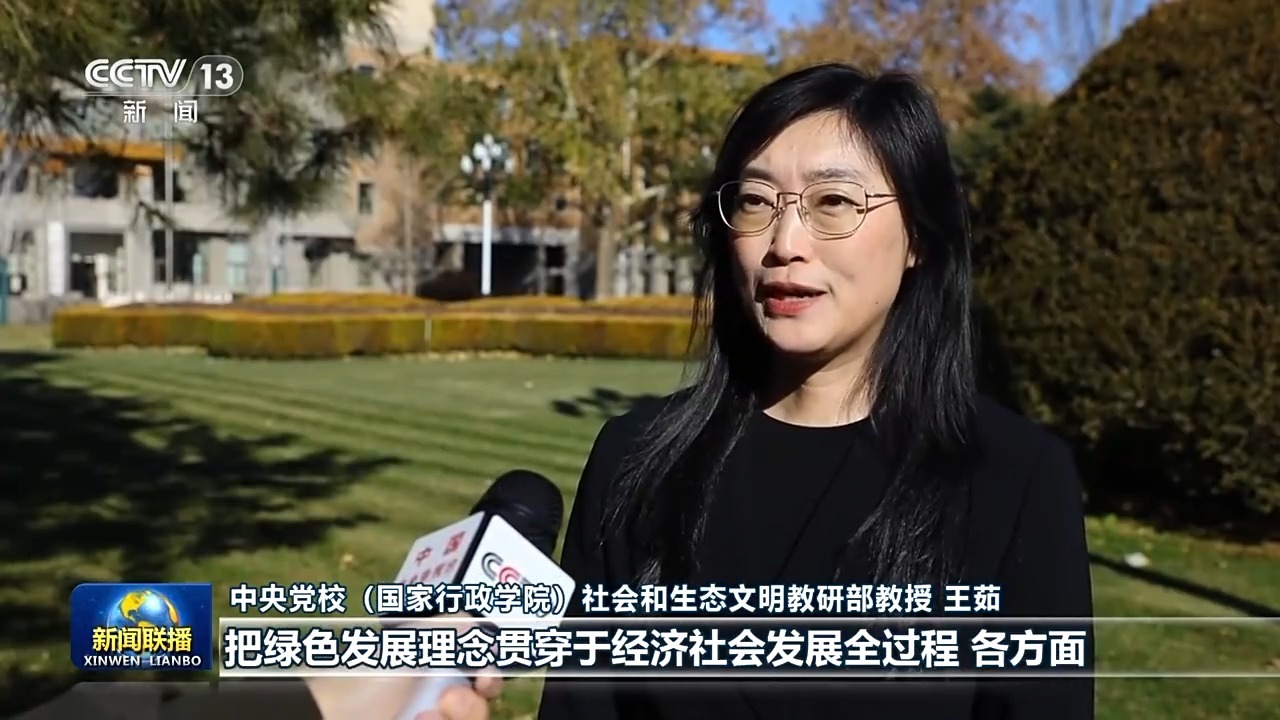 中央党校(国家行政学院)社会和生态文明教研部教授 王茹:习近平总书记要求“把绿色发展理念贯穿于经济社会发展全过程各方面”,我们看到,随着中国绿色经济转型进入更深层次的攻坚阶段,一年来,全面绿色转型的这个“全面”,涵盖了区域发展、产业结构、能源、交通运输、城乡建设、消费模式、科技创新等不同领域,是不断把绿色转型的要求融入经济社会发展全局的“全面”,更是全方位、全领域、全地域推进绿色转型的“全面”。
