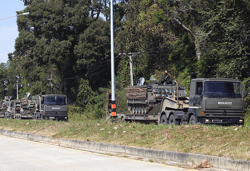 △当地时间12月12日,泰国四色菊府,泰军方装甲车。