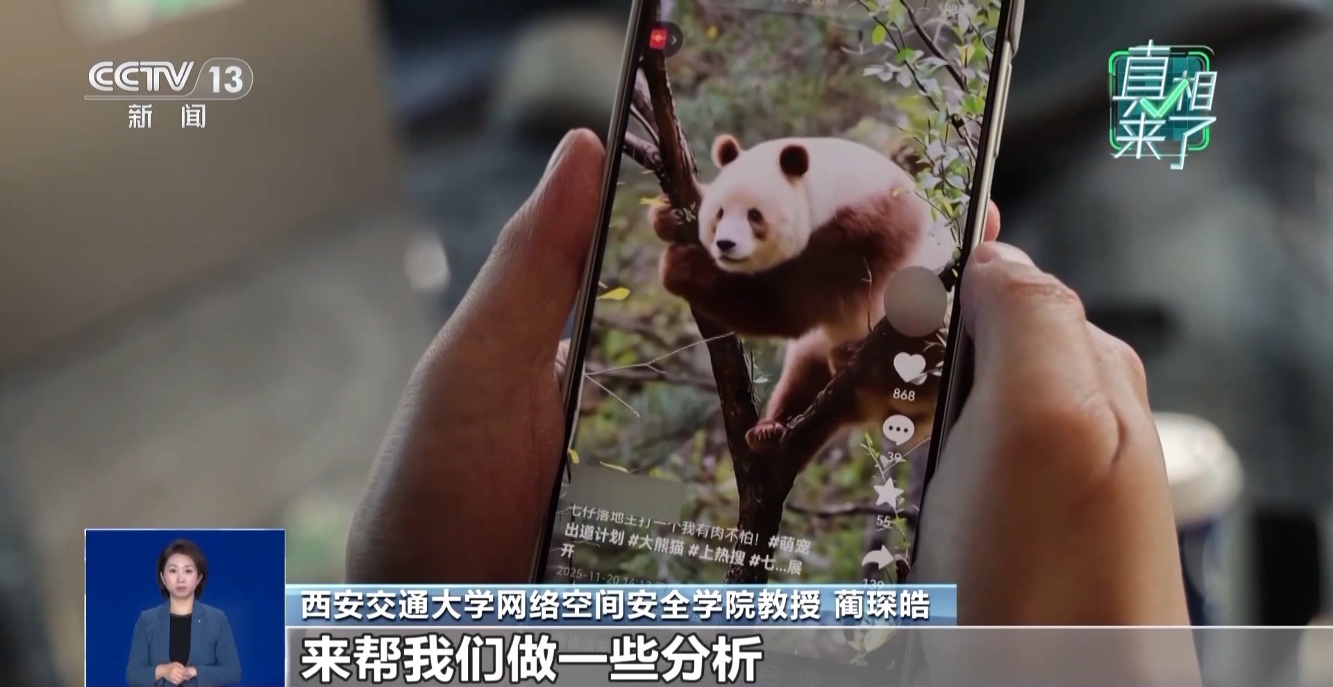 转眼球,扇耳朵,当下一段貌似大熊猫“七仔”的视频在网上热传。网友调侃说它“正在执行卧底任务”。不过也有眼尖的网友看出不对劲,猜测这段视频是AI做的。熊猫“七仔”生活在西安市周至县秦岭大熊猫研究中心,是全球唯一一只圈养棕色大熊猫。正因为“身份”特殊,所以也受到了更多网友的关注。