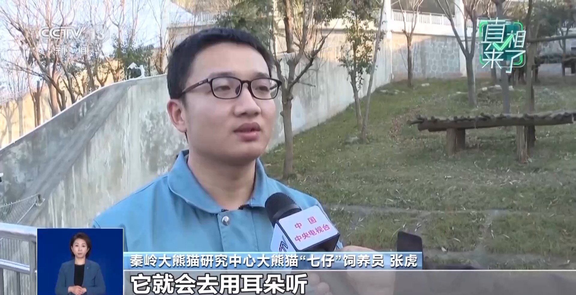 秦岭大熊猫研究中心大熊猫“七仔”饲养员 张虎:因为“七仔”眼圈周围是棕色的,和眼睛对比比较明显,所以它平时稍有点转动,人们更容易发现。其实其他的黑白色大熊猫也会转动眼睛,只是没有网上修饰得那么夸张,这是它的一个正常行为,毕竟是野生动物,对周围环境有警惕是正常的,旁边稍微有点动静,它就会去用耳朵听,用眼睛去瞄,判断对它有没有危险。“七仔”比较聪明,性格慵懒一点,它吃竹笋喜欢躺着吃,很享受的样子,性格也是慢悠悠的。