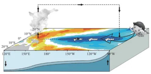 △正常情况下,赤道西太平洋是大片的暖水区,而东太平洋是一片冷水区。但在一些年份,这些情况会发生变化。拉尼娜是赤道中东太平洋海表温度大范围持续异常偏冷的现象。