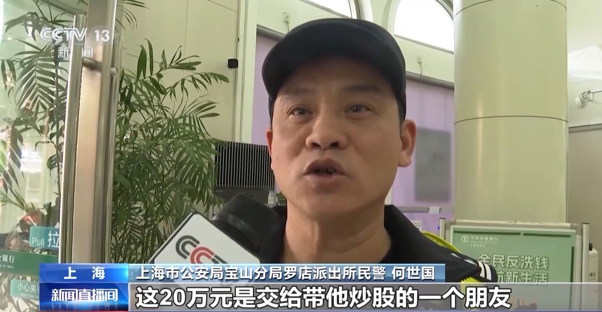 上海市公安局宝山分局罗店派出所民警 何世国:要取现金20万,说这20万是交给一个带他炒股的一个朋友。我们就问他这个朋友认识吗,他说是认识,但是含含糊糊的,我们就觉得有风险了。
