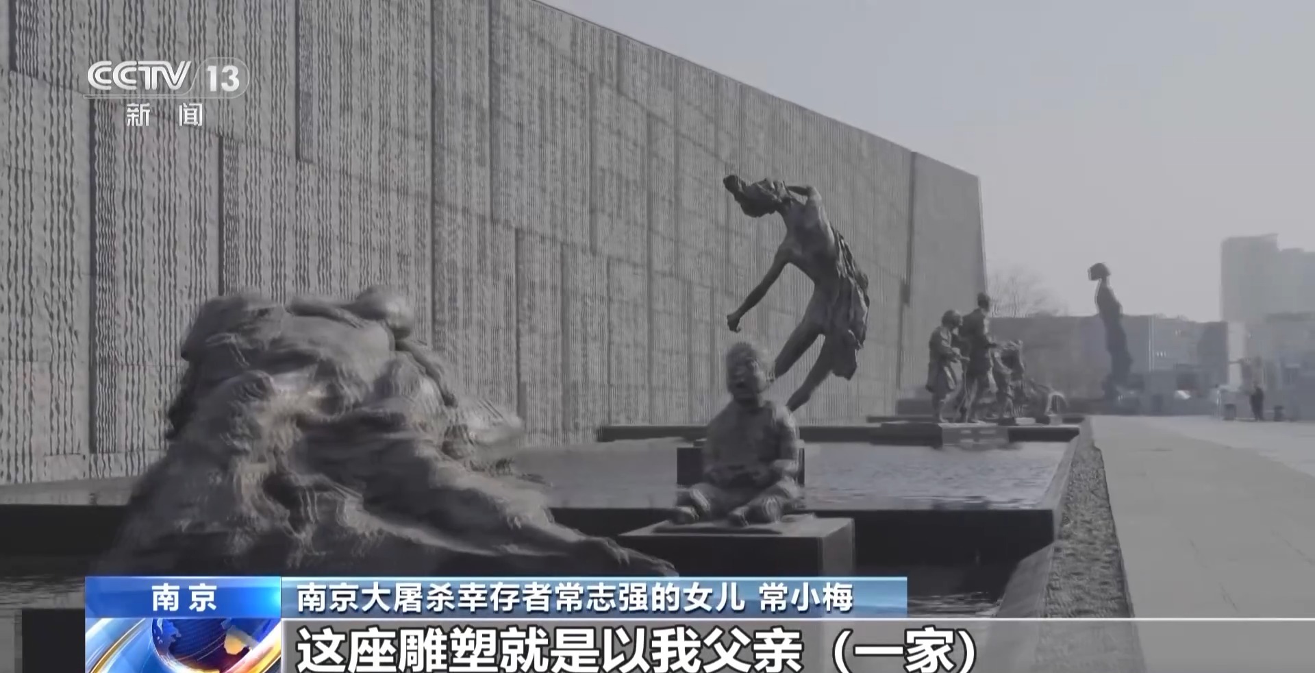 南京大屠杀幸存者常志强的女儿 常小梅:这座雕塑以我父亲一家当年受难的一个真实的原型而创作的,之前我也不知道这段历史,只知道爷爷奶奶被日军杀害,细节不知道,在陪伴中我慢慢地了解。所以父亲也把我带到这座雕塑面前,告诉我这是他最小的弟弟。