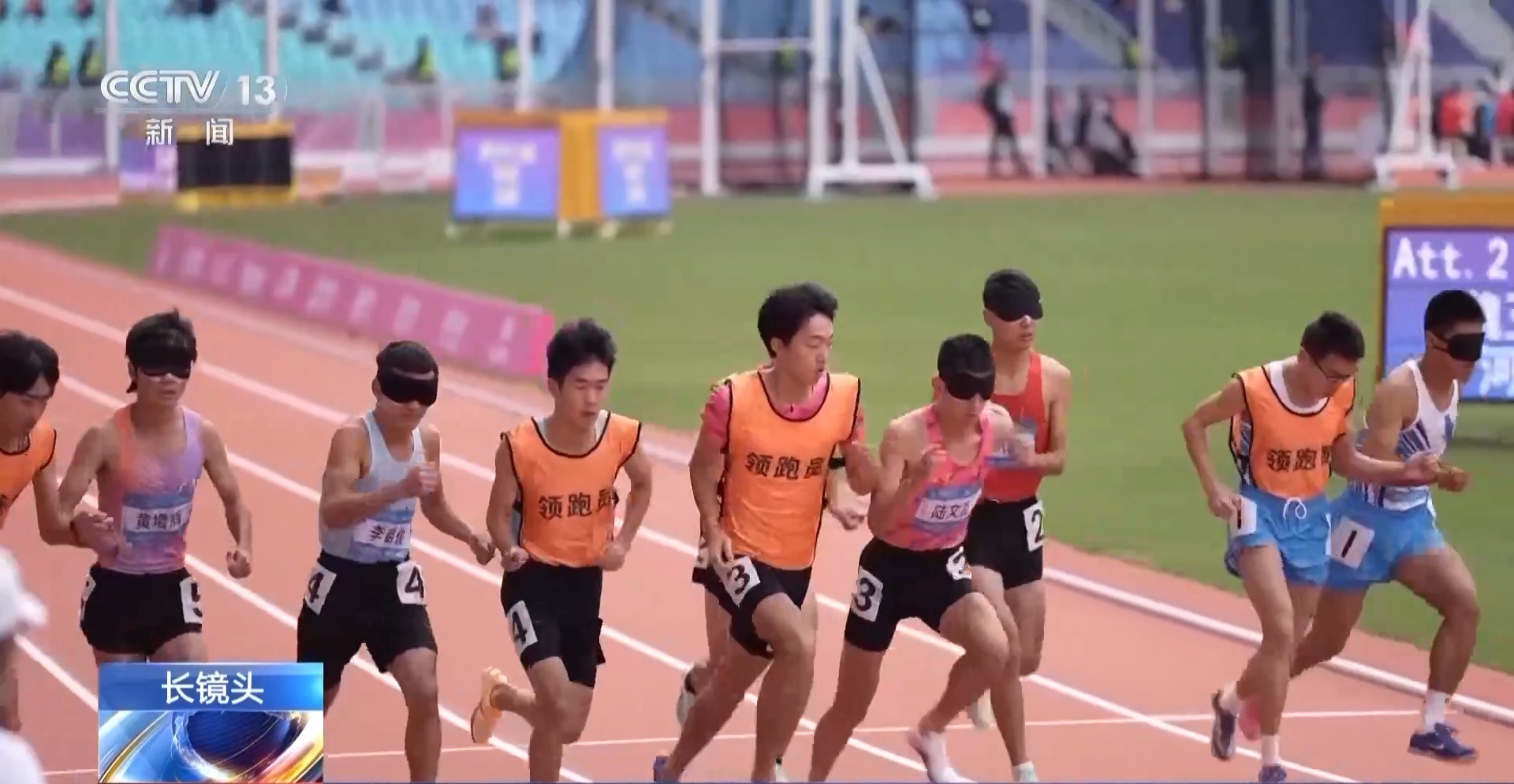 运动员 陆文旋:刚开始训练的时候跑起来是找不到方向的,没有方向感。后来是有领跑员,每次训练都一起配合,一起找到默契,让我找到一个方向感。给我脑海中画了一个跑道的形状。