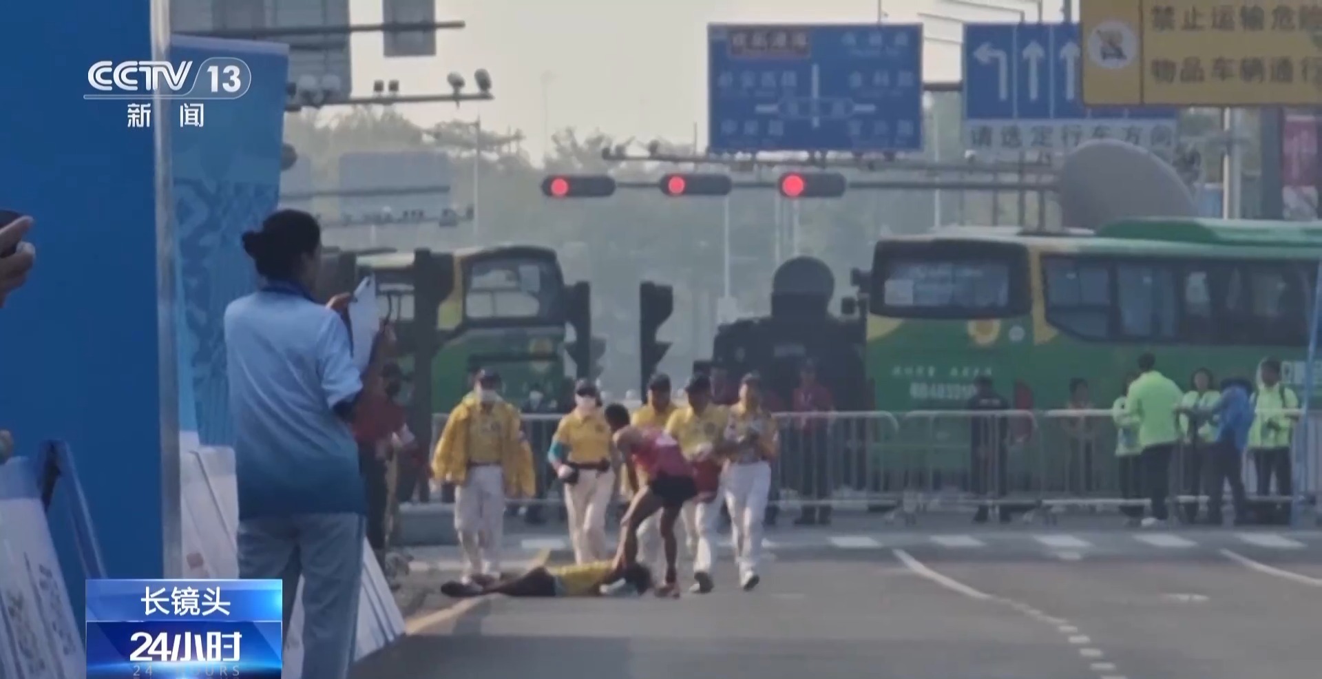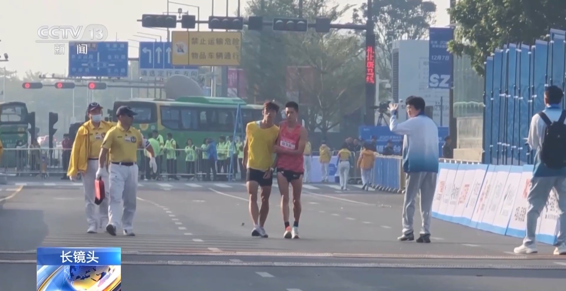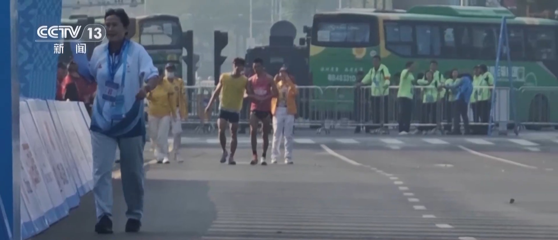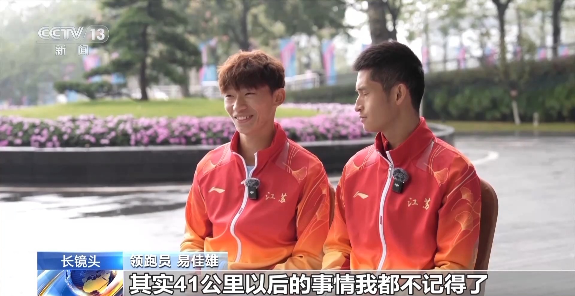领跑员 易佳雄:其实41公里以后的事情我都不记得了,我到现在都不记得。我完全没有意识了,我就记得对我的运动员说,我说你要先压线、先压线,因为我害怕后面的选手追上来了。我就想着能跑一点是一点,一定要过终点。
