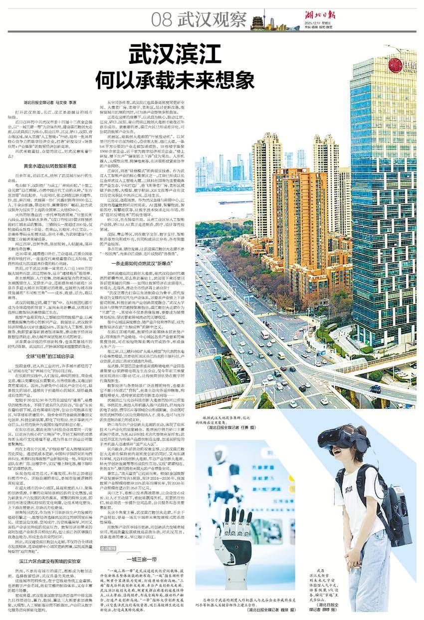 武昌滨江与光谷科技创新大走廊的协同已现雏形。举例而言,荆楚人形机器人落户武昌后,已与光谷的电子皮肤、惯导芯片等领域企业形成配套。企业既可依托武昌的核心区位优势吸纳人才、资本,也可与光谷的先进制造能力形成互补。