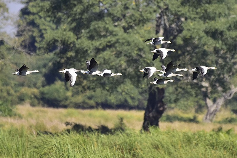 △印度阿萨姆邦卡齐兰加国家公园,一群斑头雁。