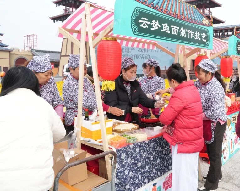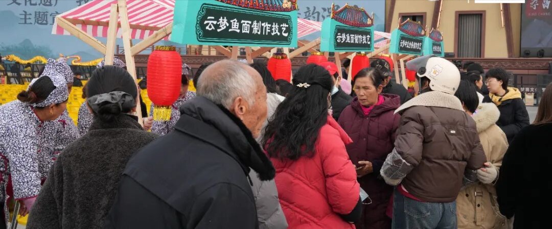 非遗文化体验区同样热闹,非遗传承人现场展示雕花剪纸、云梦鱼面制作等技艺,让大家近距离感受非遗的动手乐趣。