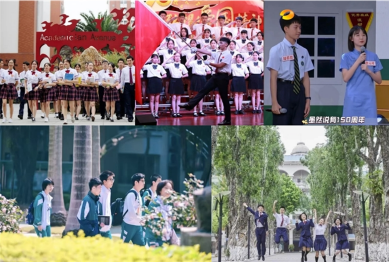 作为较早推行校服的城市,广州多所百年老校的校服已成为文化符号:真光中学的旗袍式校服、华南师范大学附属中学沿用30年的白蓝绿三色校服、广州市满族小学融入民族图饰的特色设计,不仅见证学校发展历程,更成为校友情感认同的纽带。
