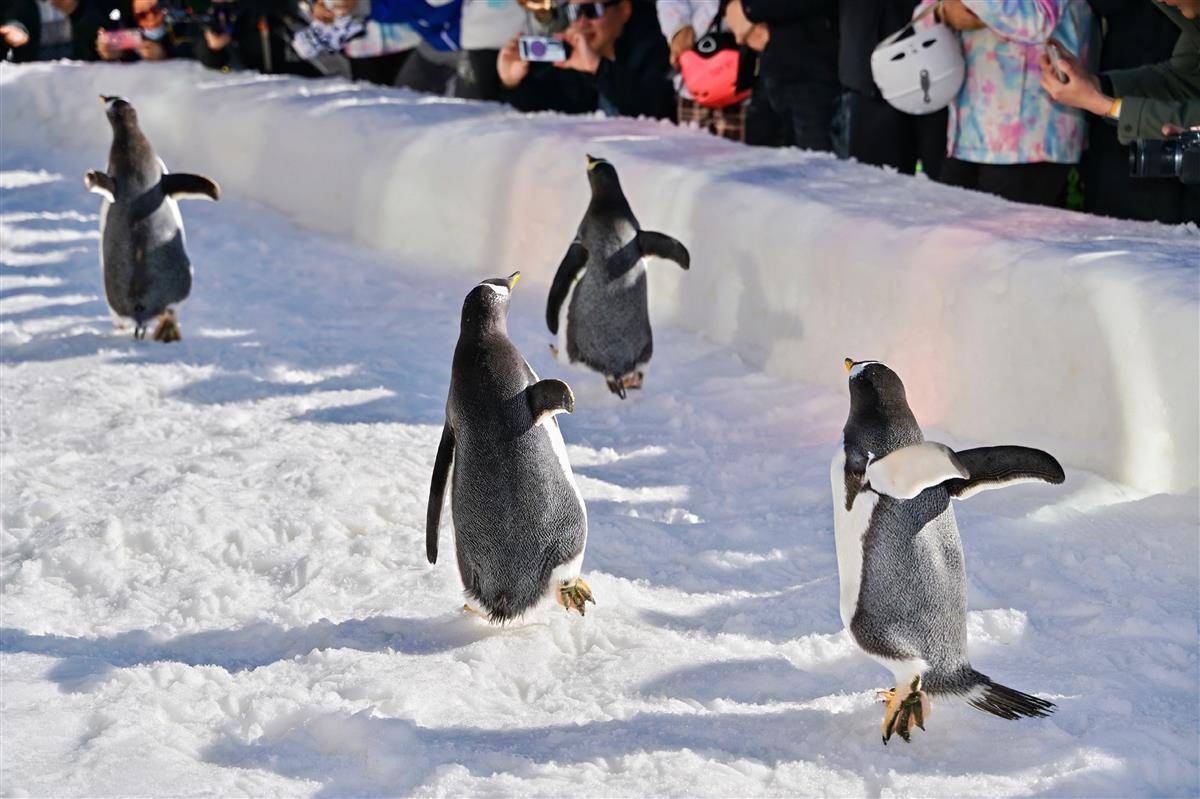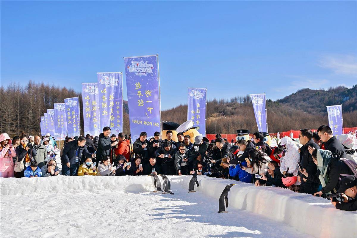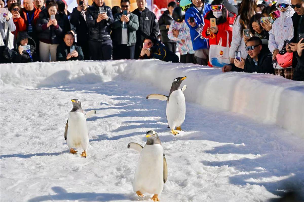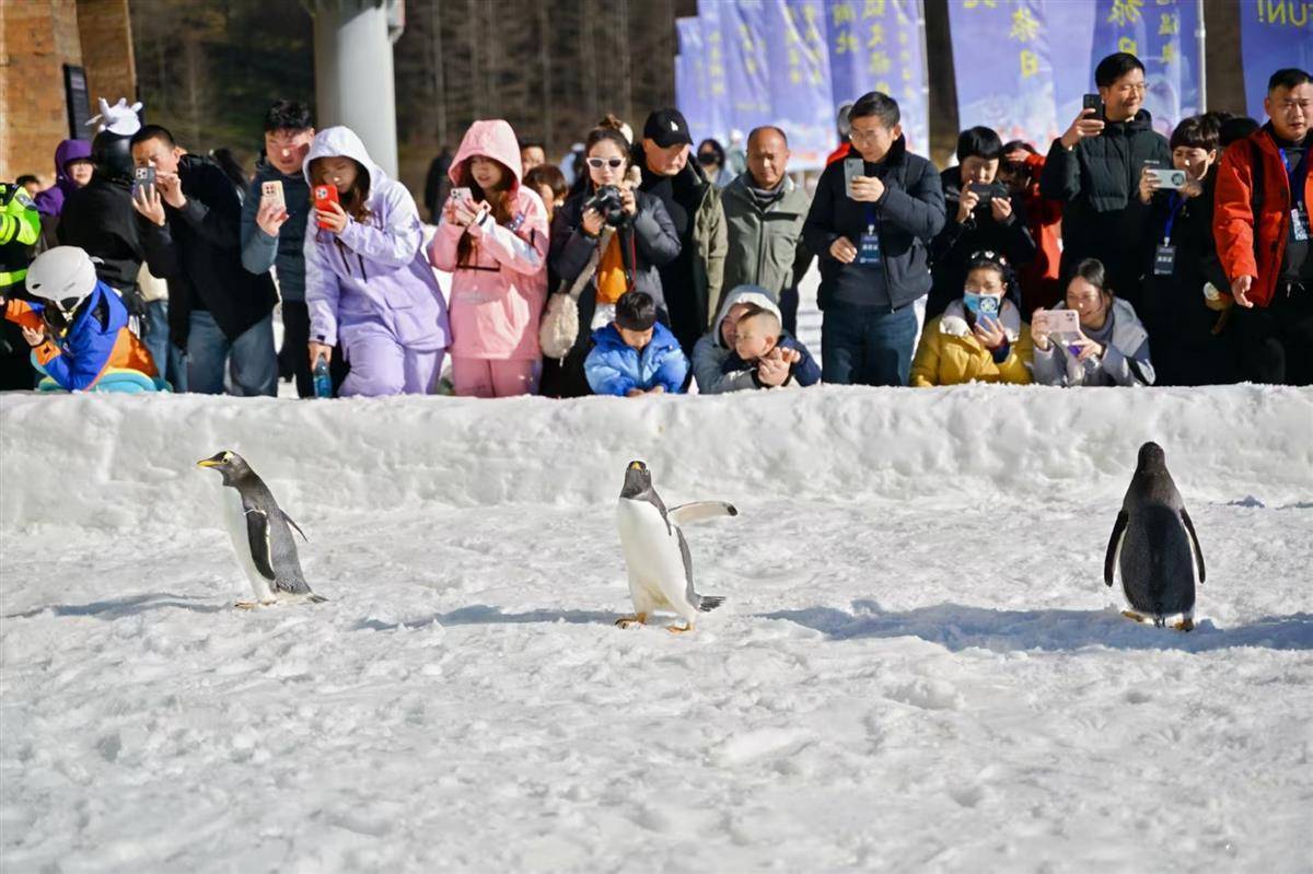 12月17日,神农架第二十届冰雪季在神农架国际滑雪场正式启幕。活动现场,新开设的企鹅专属生态展示区围满了争相拍照的滑雪客。玻璃门打开,4只企鹅摇晃着身子走了出来。