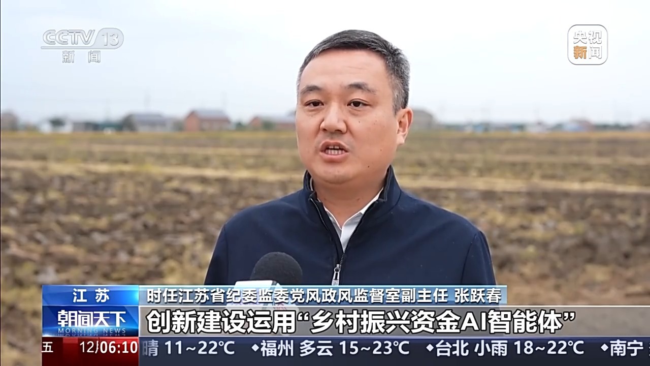 时任江苏省纪委监委党风政风监督室副主任 张跃春:创新建设运用“乡村振兴资金AI智能体”,建立高标准农田项目知识库和大数据监督模型,精准梳理排查问题线索。下一步,我们将充分运用专项整治的成果,发挥纪委监委的监督职能,扎实推进乡村振兴战略在江苏全面落地见效。
