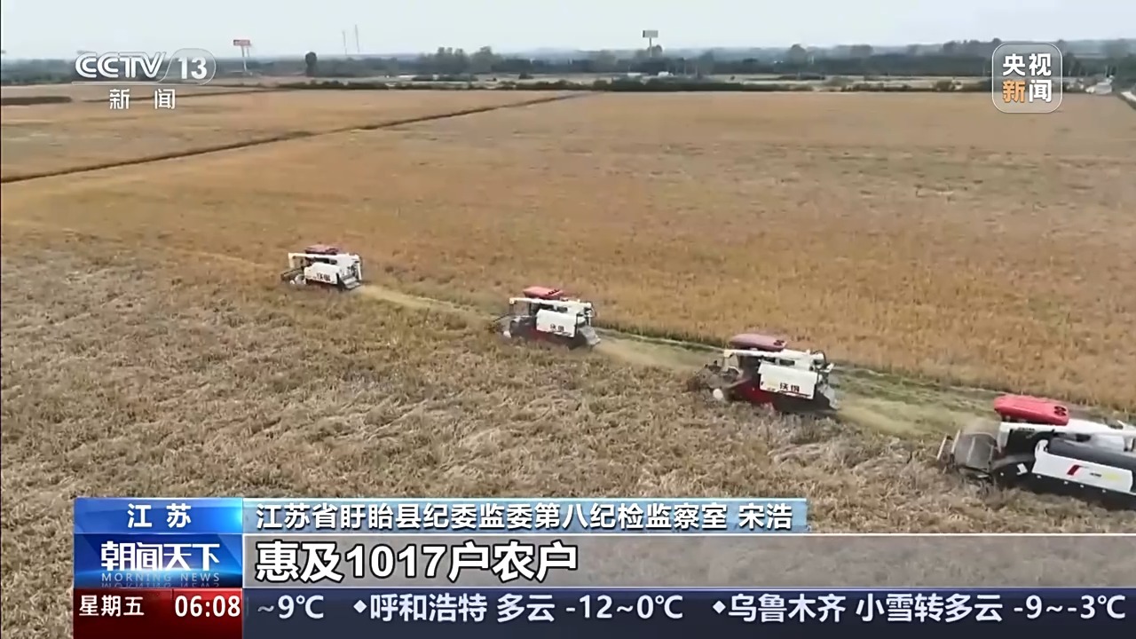江苏省盱眙县纪委监委第八纪检监察室 宋浩:通过部门联动和数据核验,截至2025年5月22日,2024年以及之前未兑付的农机购置与应用补贴资金2050.8万元全部兑付到位,惠及1017户农户,有效保障农户权益。