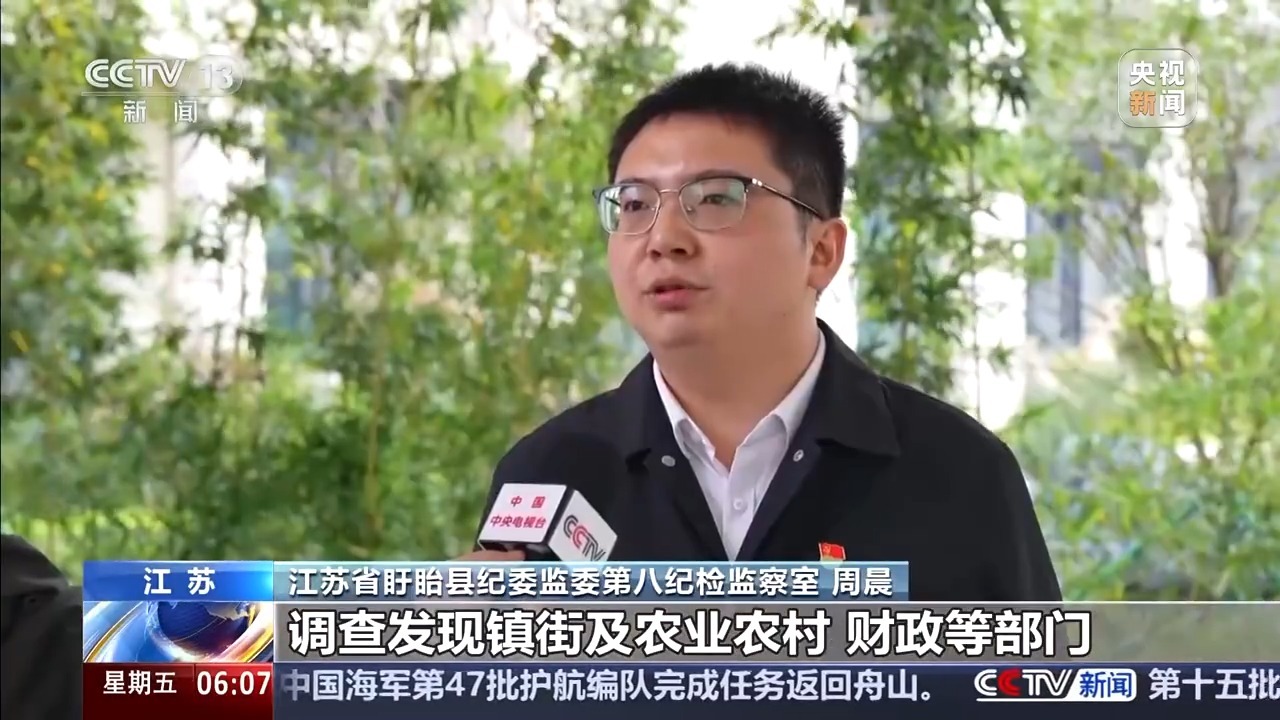 江苏省盱眙县纪委监委第八纪检监察室 周晨:调查发现镇街及农业农村、财政等部门,对其申报材料审核迟缓,导致补贴发放晚了。