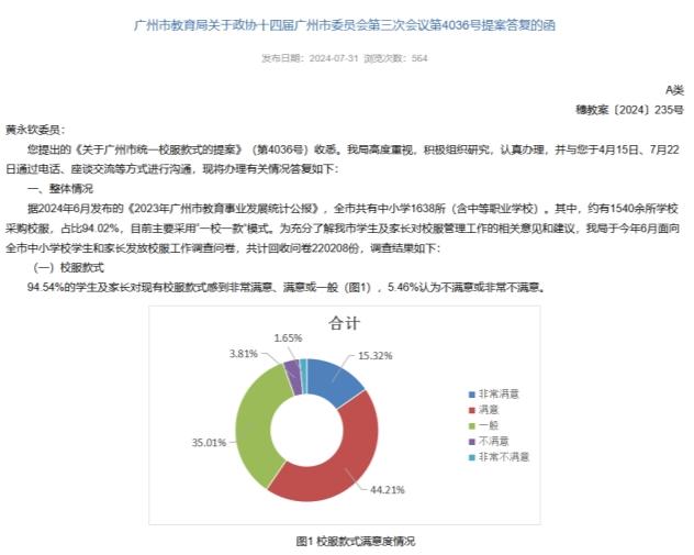 广州市教育局坚持“一校一款”并非主观决断,而是基于扎实调研的理性选择。在2024年7月对政协提案的答复函中,市教育局明确“暂不推行全市统一校服,优化‘一校一款’模式”,这一结论背后是覆盖22万学生及家长的问卷调研支撑。