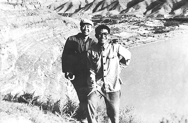 1970年夏日,曹谷溪和路遥在延川黄河畔合影。