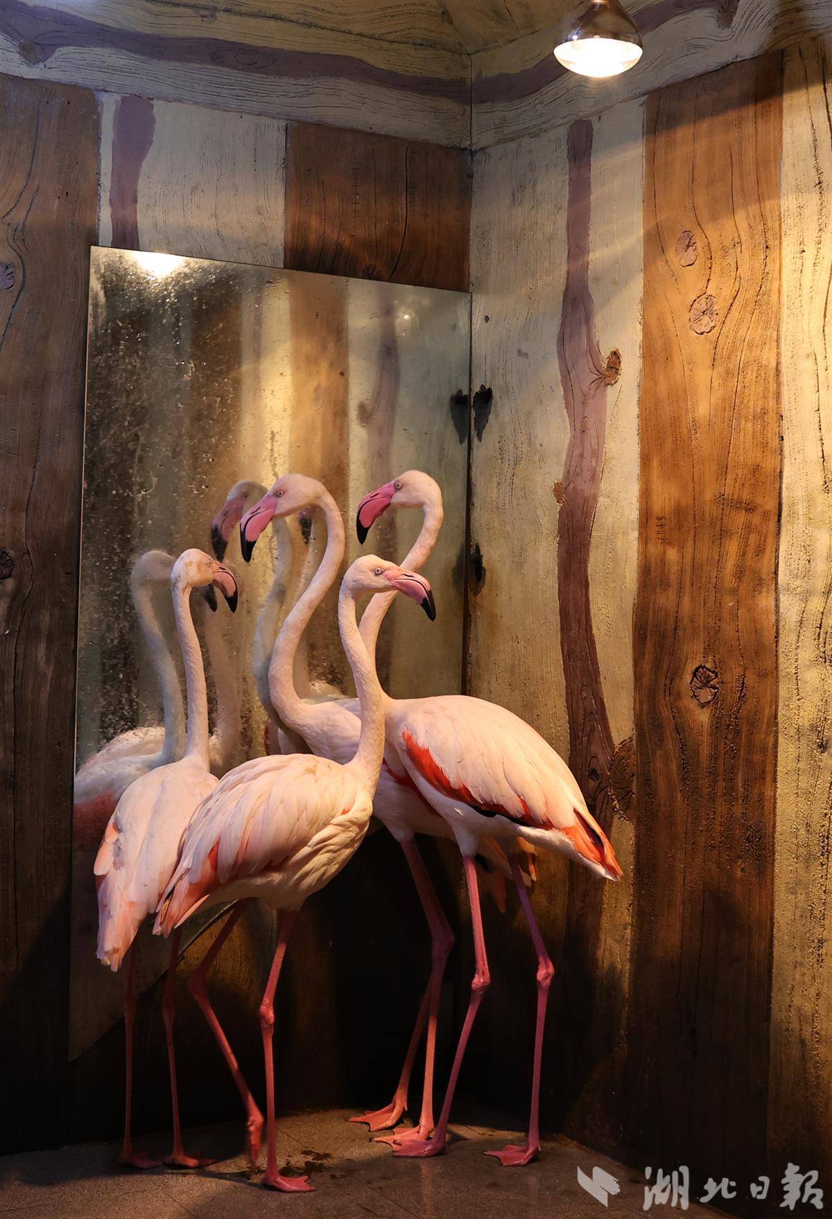 加热灯让来自非洲的火烈鸟不再寒冷。(湖北日报全媒记者 陈迹 摄)