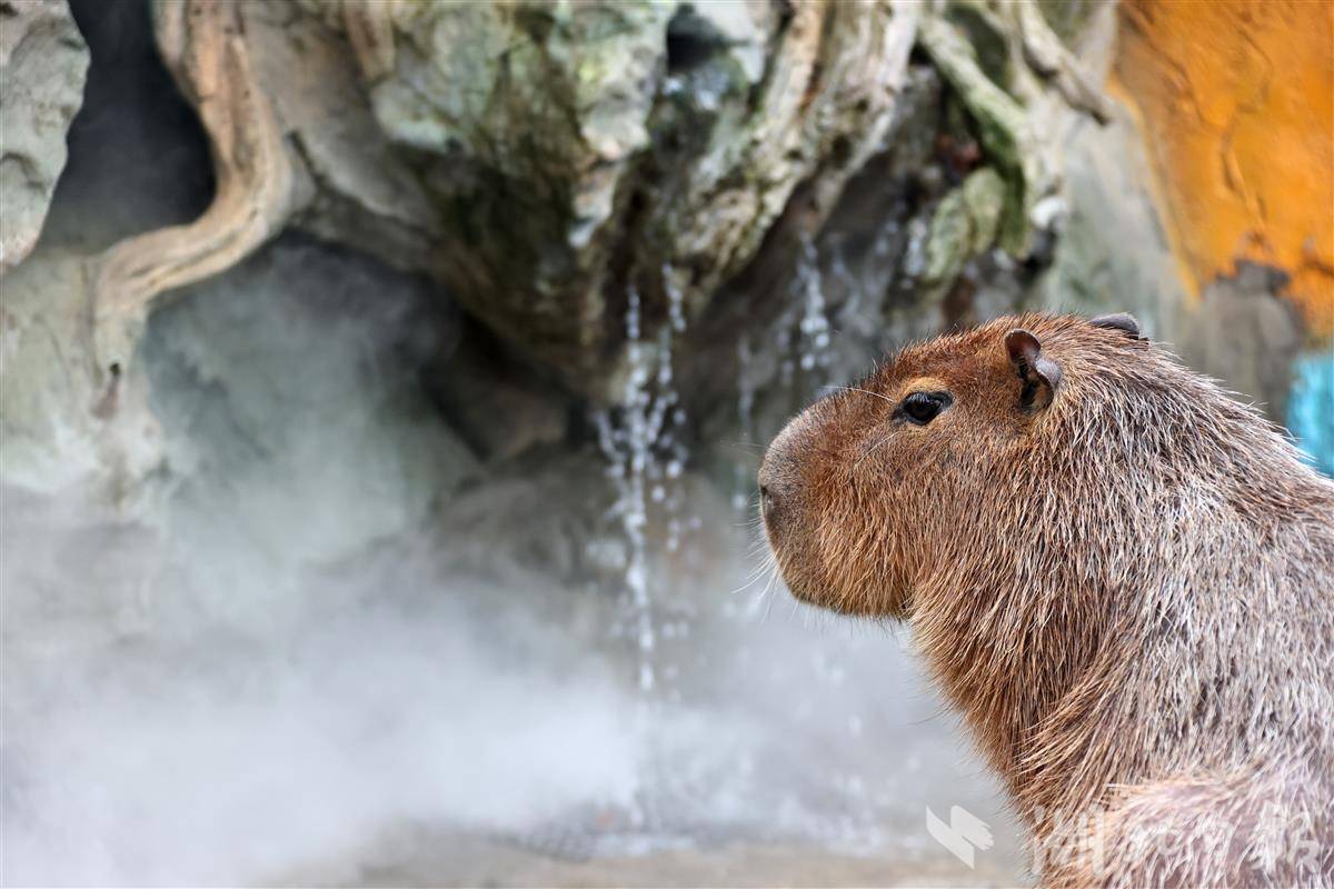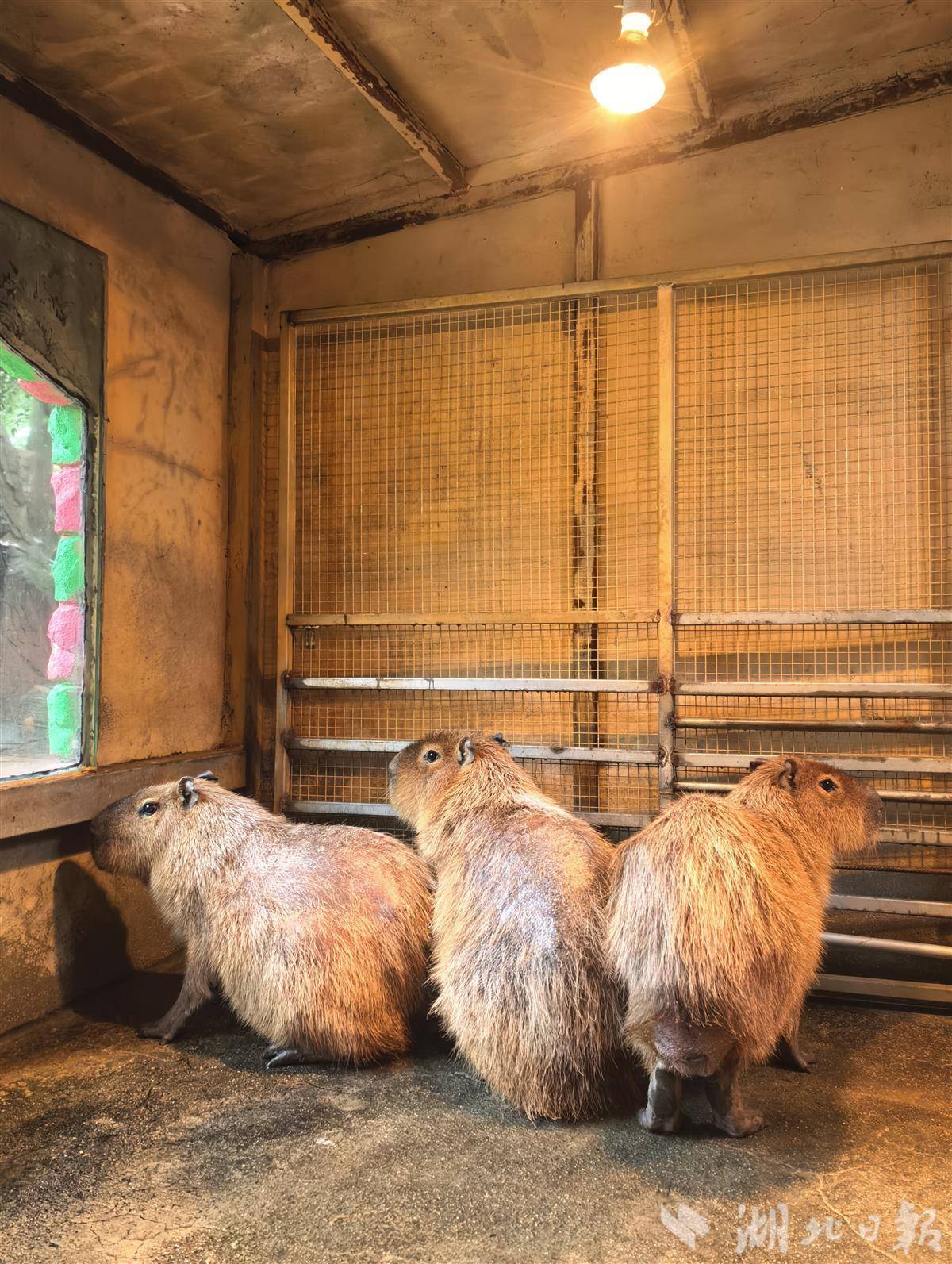 脚下有地暖,屋顶有加热灯,来自南美洲的水豚在武汉温暖过冬。(湖北日报全媒记者 陈迹 摄)
