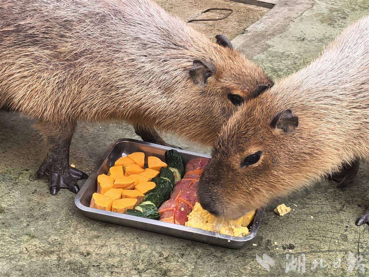 大快朵颐的水豚。(湖北日报全媒记者 陈迹 摄)